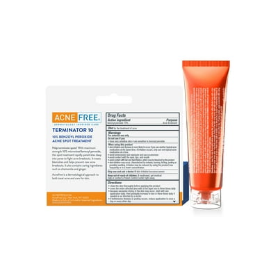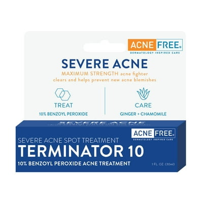 Like many over-the-counter BPO creams AcneFree Terminator-10 contains 10 BPO. Acne Free Terminator 10 Acne Spot Treatment with Benzoyl Peroxide is an acne spot treatment ideal for breakouts that need targeted fast action. Acnefree Maximum Strength Terminator 10 1 Oz Pack of 3 NZ 15200 NZ 9200 Save.